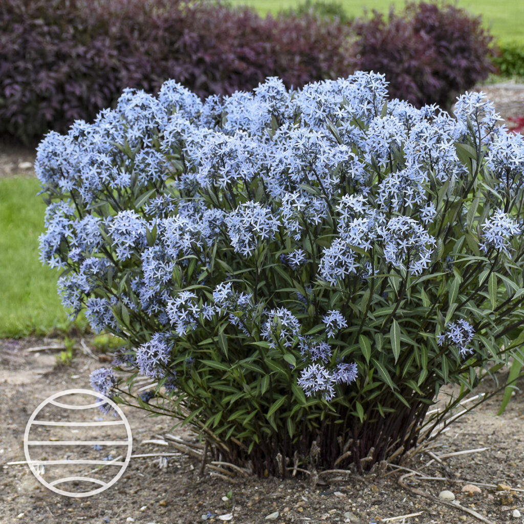 The bright green, compact, slowly spreading foliage forms the perfect background for the delightful blossoms and then turns a rich shade of yellow in fall. Amsonia adds a billowy, finely textured element to the landscape. It grows into a dense mass, much like a small shrub.