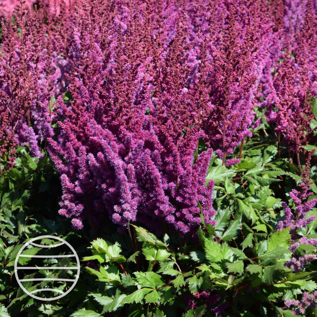 Astilbe Visions selections, based on Astilbe chinensis, gives the varieties strong flowering and excellent garden performances. A purple red variety.