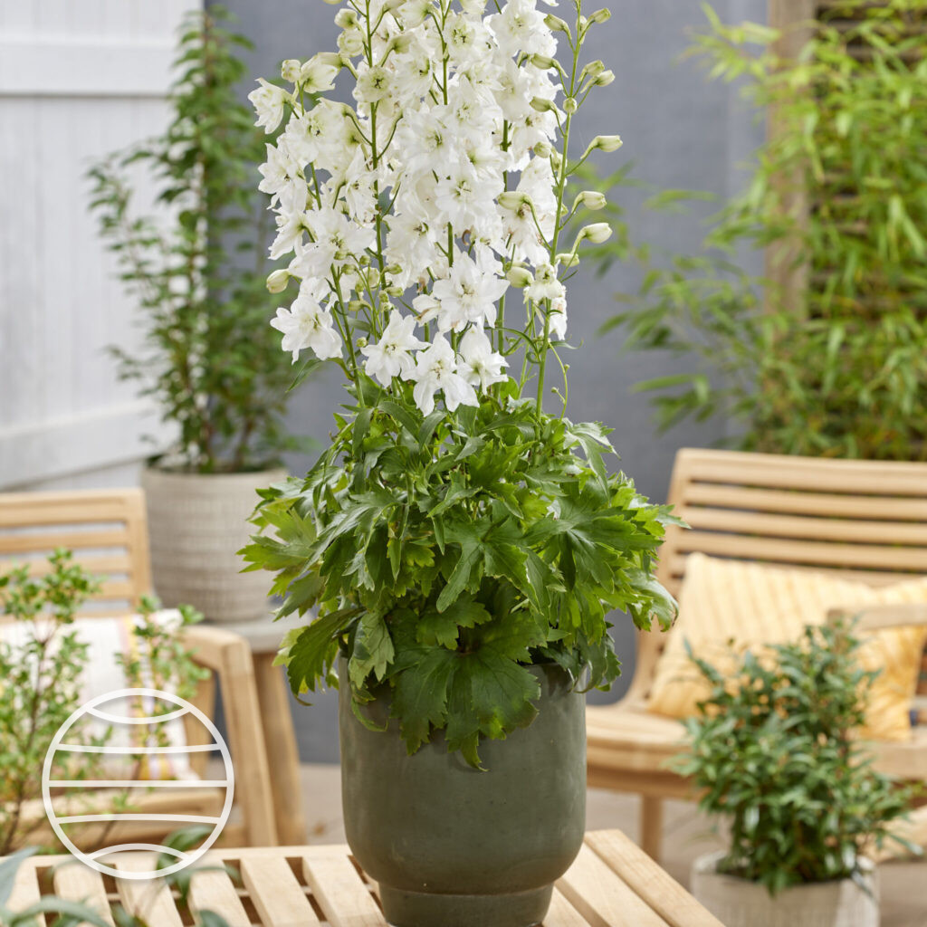 Discover the beauty of Delphinium with our exceptional compact species. Delphinium Pixie Rocket® boast excellent basal branching, ensuring multiple large flower stems that bloom quickly and abundantly. Moon Rocket is a beautiful white variety.