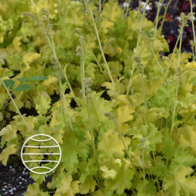 consistently one of our top selling Heuchera. Lime-green to chartreuse ruffled foliage. This refreshing colour is the perfect contrast plant allowing it to mix well with others. A vigorous grower is topped with small pure white flowers in spring